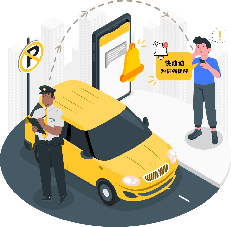有了快动动APP,违停短信一到,立刻铃声大作, 此刻挪车可轻松免罚。